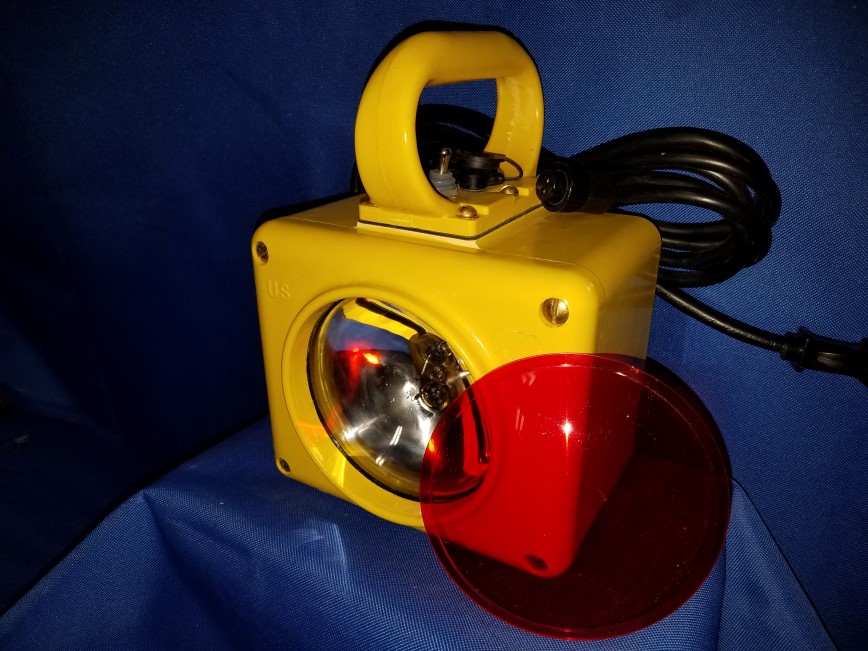 Rechargeable portable lantern with incandescent lamp, red filter (M16377/43-001) and PC25 Bracket attached